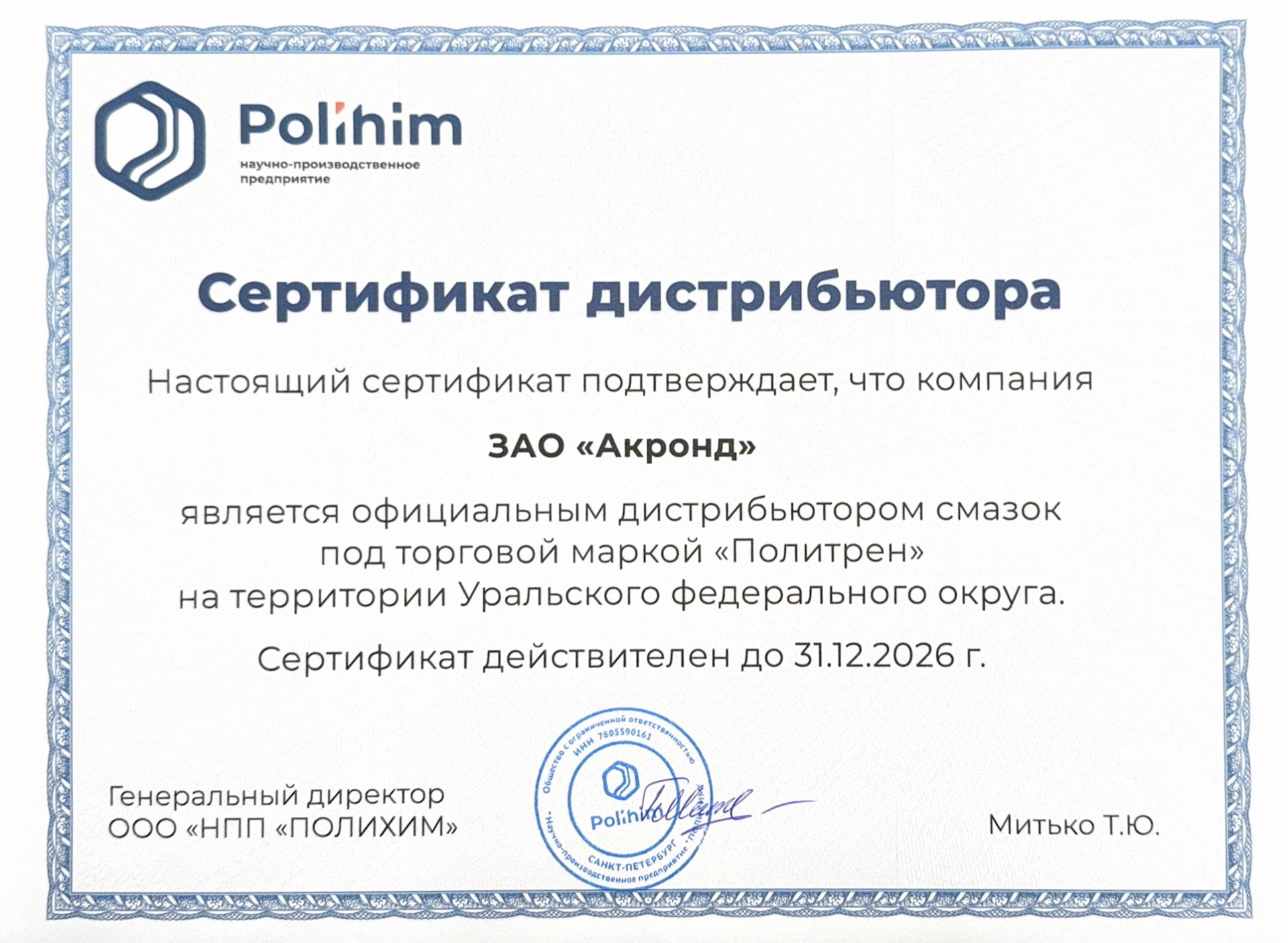 Акронд расширяет продуктовый портфель смазочными материалами производителей Полихим и Belgin